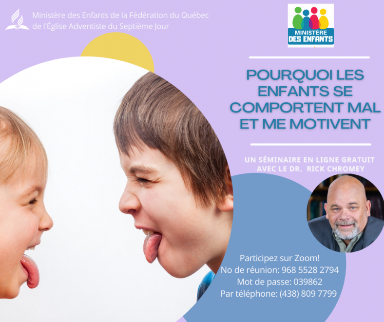 Ce dimanche, 14 mars à 11h nous vous invitons à être des nôtres pour un séminaire aussi instructif qu’intéressant, présenté par le Dr. Rick Chromey. Le Dr. Chromey est un spécialiste du domaine et forme les éducateurs, les leaders, les parents et les pasteurs depuis des années afin de les aider à mieux encadrer les enfants. Sa présentation, intitulée « Pourquoi les enfants se comportent mal et me motivent», vous aidera certainement à mieux comprendre et mieux éduquer vos enfants. Cette formation gratuite est une occasion exceptionnelle d’enrichir vos connaissances pour le bénéfice de nos jeunes âmes.